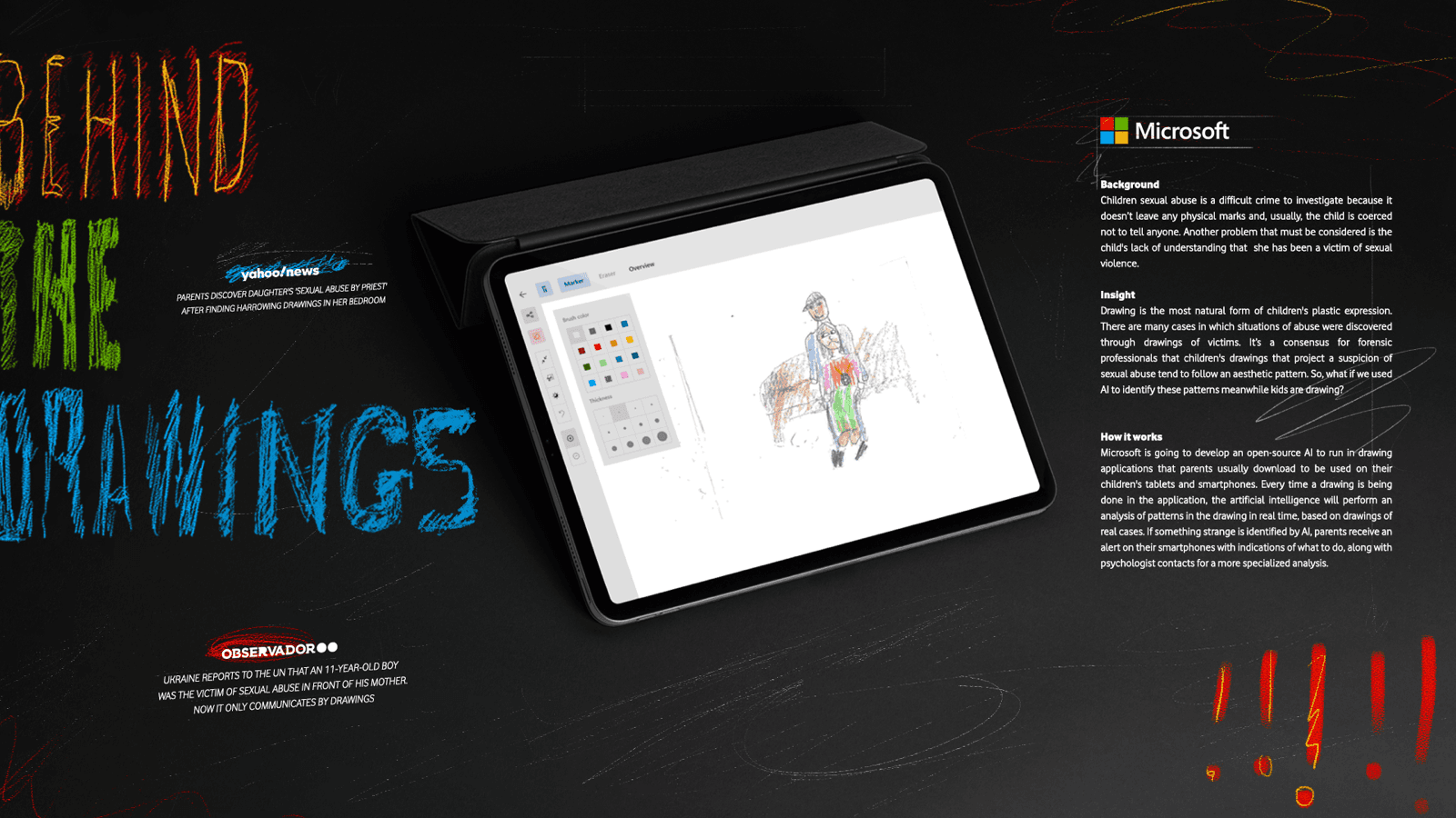 O "Behind The Drawings" é um algoritmo open source criado pela Microsoft, projetado para ajudar na identificação precoce de uma das maiores e mais perturbadoras questões sociais: o abuso sexual infantil. O algoritmo é capaz de reconhecer padrões gráficos a partir desenhos hipersexualizados, que podem ser indicativos de exposição ou experiência traumática relacionada ao abuso. O mesmo vai ser feito para rodar nomeadamente nas aplicações de desenho de computadores e gadgets das escolas, e tem como objetivo auxiliar professores, psicólogos e conselheiros escolares na identificação precoce do problema, porque pode servir como um sinal de alerta e encaminhar para avaliações mais aprofundadas por especialistas.