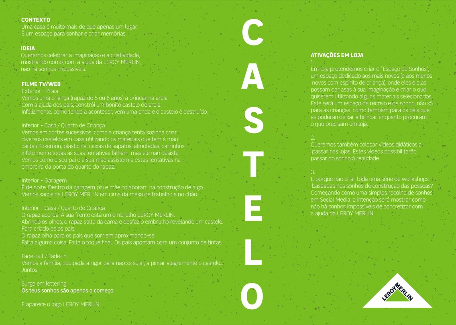 “Castelo” tem como objetivo celebrar a imaginação e a criatividade, destacando como a LEROY MERLIN pode tornar sonhos em realidade, transformando uma casa em um espaço para sonhar e criar memórias especiais.