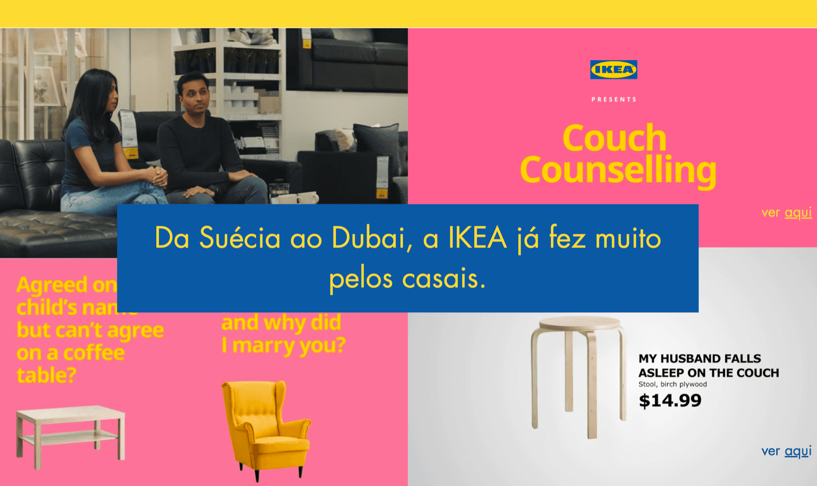 Em 2021, 6 em cada 10 casamentos portugueses acabou em divórcio. A falta de comunicação está no centro deste problema. Poucos casais recorrem a especialistas. Depois do Reiki e do Shiatsu, surge o Aeki. É a nova solução DIY da IKEA. Como funciona? Terapia invertida: as peças falam pelo psicólgo. Serão criados manuais de instruções personalizados, em parceria com a Ordem dos Psicólogos Portugueses, com perguntas-chave para reflexão individual e em casal.