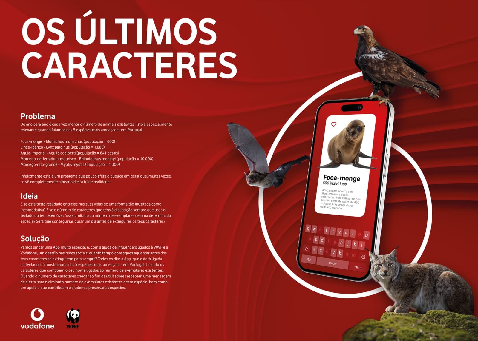 Este projeto aborda a ameaça de extinção de várias espécies em Portugal. A ideia principal é criar uma aplicação móvel que limite o número de caracteres disponíveis no teclado do telefone de acordo com a população de uma dessas espécies. A campanha é apoiada por influenciadores ligados à WWF e à Vodafone, com o objetivo de sensibilizar o público para a conservação das espécies ameaçadas.