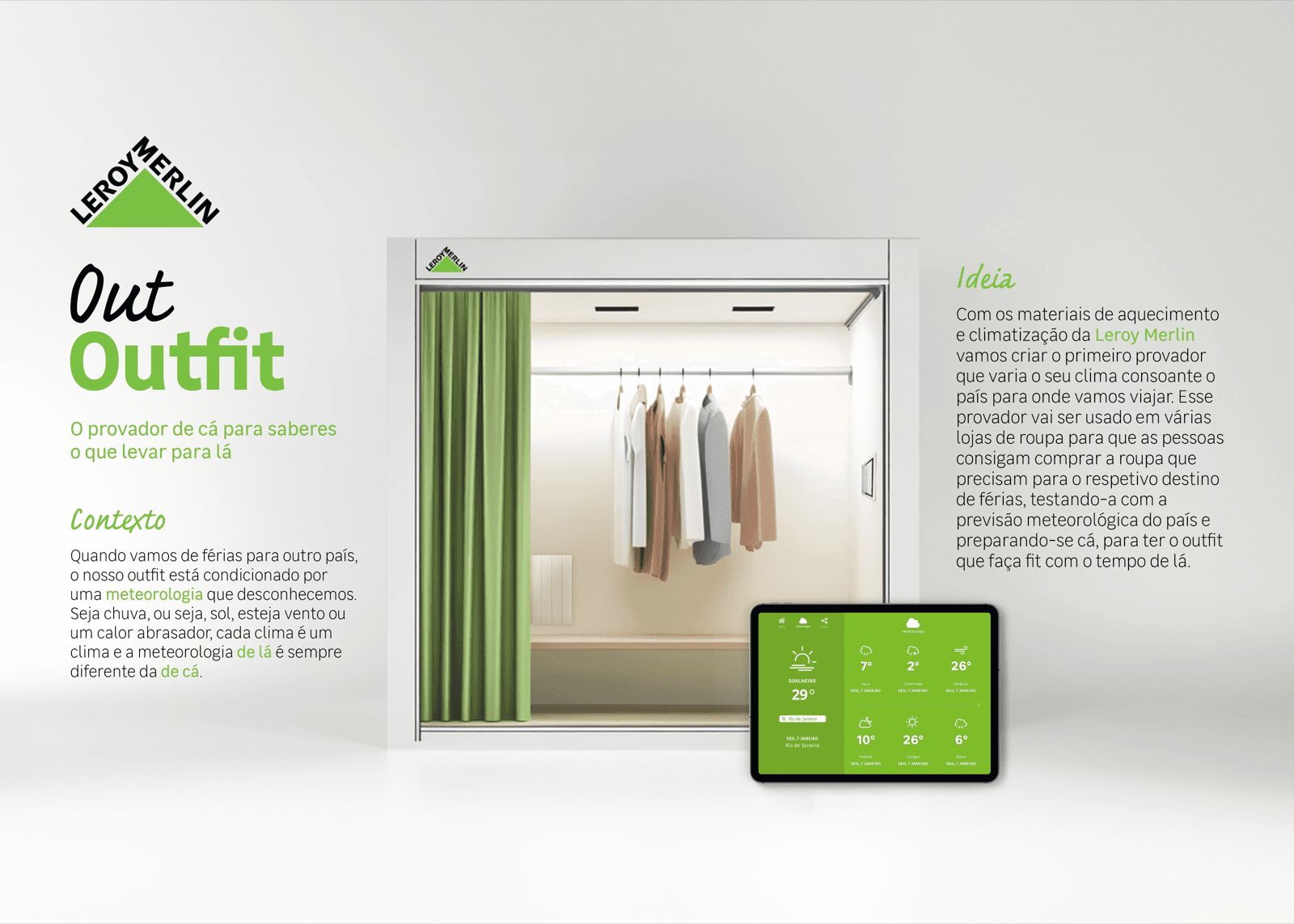 Quando vamos de férias é difícil saber que roupa levar, porque nunca sabemos como é o clima do outro país, para isso a Leroy Merlin, com os seus materiais de climatização, vai criar o primeiro provador de cá para saberes o outfit que faz fit com o tempo de lá.