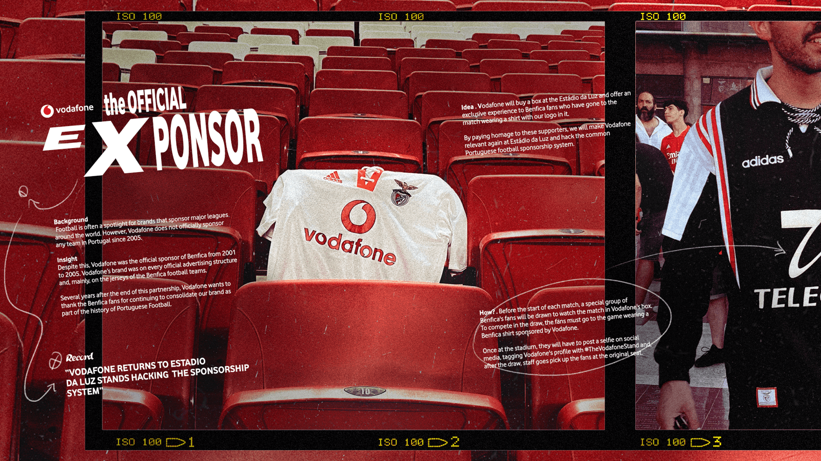 Apesar de não mais patrocinar nenhuma equipa da Primeira Liga, a Vodafone vai voltar às bancadas a partir das camisolas antigas do Benfica, cujo o patrocínio ainda era o da marca. Assim, vai estimular os adeptos que ainda possuem estes modelos das camisolas, a irem para o Estádio da Luz com elas. Para isso, nos minutos que precedem os jogos, vai realizar um sorteio em tempo real, onde os adeptos que fizerem um post com as suas camisolas e a tagar a Vodafone, podem ter a chance de assistir àquela partida no camarote da Vodafone, com tudo o que têm direito. Uma vez sorteados, esses adeptos vão ser convidados pelos promotores da marca a subir para o camarote.